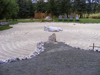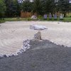 Lassan elérkeztem oda, ahol a folyam beletorkollik a kőtengerbe, amiről tudtam (a táblán elolvastam), hogy ez az „öregedés tengere” ami egy meditációs kert. A túlsó parton hívogatóan vártak a pihenőágyak. Körbesétáltam a „tavat” majd megpihentem.