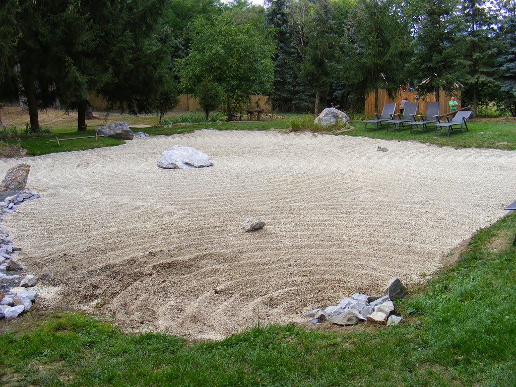 A zen kertek sajátja, hogy a vizet szimbolizáló kövek csak díszítő elemek, így rájuk lépni nem szabad.